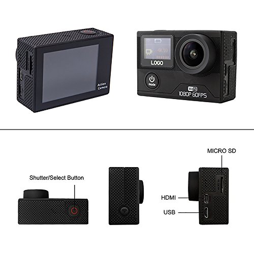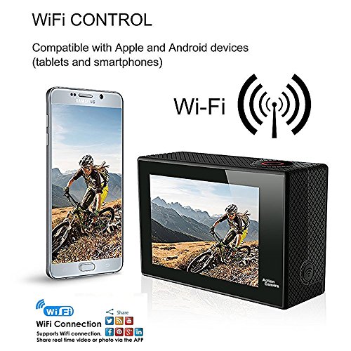 Wireless Wrist Remote Control, Built-In WIFI & HDMI Sports Camera:Featuring a wrist 2.4G wireless RF Remote Control, framing shots or recording video are now ultra convenient-just press the button of the Remote Control. Built-In WIFI