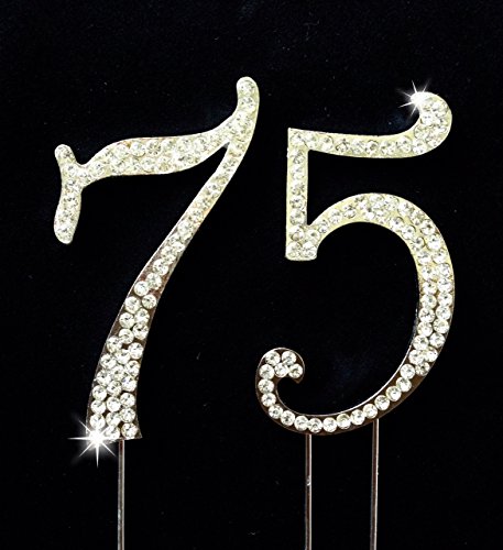 75th Birthday / Wedding Anniversary Number Cake Topper with Sparkling Rhinestone Crystals - 2.75