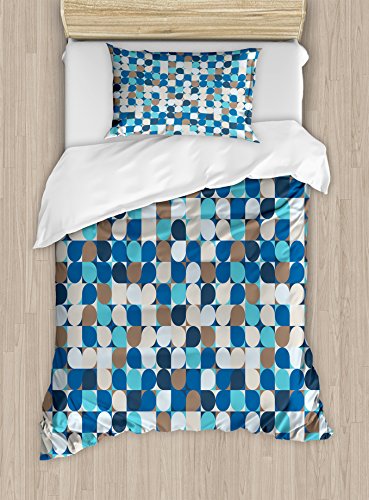 (Ambesonne)/Bedding Bath/Bedding/DIRECT FROM USA/Abstract Duvet Cover Set by Ambesonne, Circles in Squares Mosaic Pattern Pastel Colors Modern G...