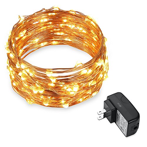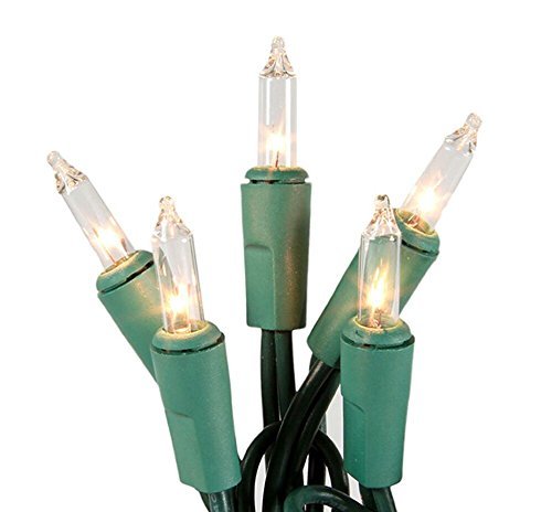 100 Clear mini lights spaced 2.5" apart on white wire, 21' total length