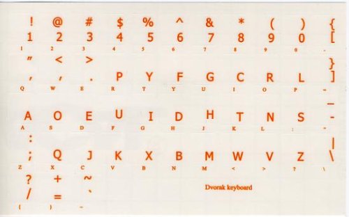 The Dvorak layout is spread onto transparent - matt sticker, with orange color.