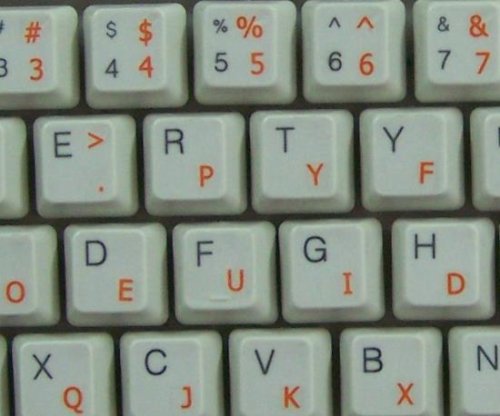 The Dvorak layout is spread onto transparent - matt sticker, with orange color. Dvorak studied letter frequencies and the physiology of people's hands and created a layout to adhere to these principles: • It is easier to type letters alternating between hands. • For maximum speed and efficiency, the most common letters and digraphs should be the easiest to type. This means that they should be on the home row, which is where the fingers rest, and under the strongest fingers. • Likewise, the least common letters should be on the bottom row, which is the hardest row to reach. • The right hand should do more of the typing, because most people are right-handed. • It is more difficult to type digraphs with adjacent fingers than non-adjacent fingers. • Stroking should generally move from the edges of the board to the middle. An observation of this principle is that, for many people, when tapping fingers on a table, it is easier going from little finger to index than vice versa. This motion on a keyboard is called inboard stroke flow. The Dvorak keyboard layout became easier to access in the computer age. Currently, all major Operating Systems (such as Apple OS X, Microsoft Windows, GNU/Linux and BSD) ship with Dvorak keyboard layout in addition to the standard QWERTY layout. So far, DSK has failed to displace the QWERTY standard. Clear transparent background makes stickers invisible, and allows existing characters to show through. The product listed above is copyrighted, has been manufactured and distributed by Royal Galaxy Ltd. Usage of the images posted, distribution or resale has NOT been authorized by Royal Galaxy Ltd, and is in direct violation of its written terms. Federal law provides severe civil and criminal penalties for the unauthorized usage, distribution or resale of copyrighted product, its listings with all imaged posted. For all requests regarding usage of images of this product, its distribution and resale, please contact us by email.