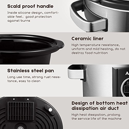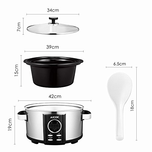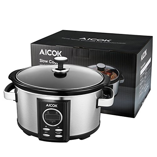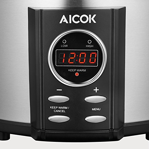 Aicok is a professional kitchen appliance company, we mainly focus on the kitchen equipment. The slow cooker with 7 quart, digital timer, tempered glass lid, removable ceramic cooking pot will be your perfect choice. Features: Jumbo Oval: 7-Quart