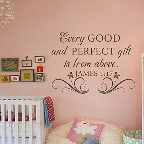 -. Title : MairGwall Every Good and Perfect Gift Is From Above Wall Decal - Baby Scripture James 1 17 Wall Decal (Black, Small)