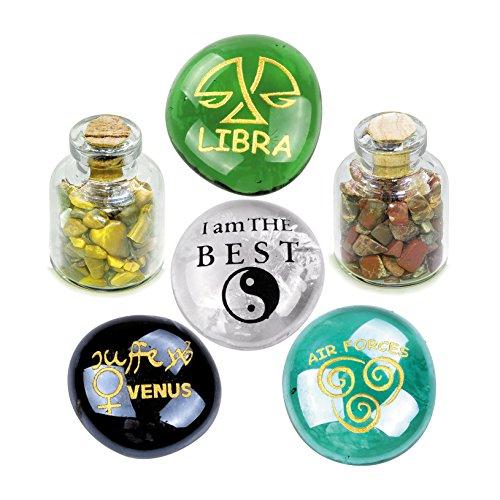 Ancient Zodiac Libra Yin Yang Powers Birthstones Tiger Eye Jasper Magical Glass Stones Bottles Set
