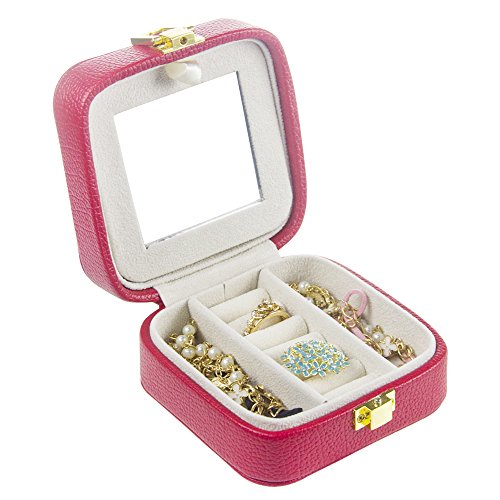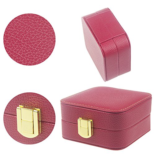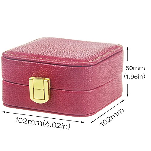 - ★Material and Size--Made of red faux leather, medium density fiberboard,Beige environmental protection Pearl cashmere liner,Easy to clean and maintain. This travel jewelry box is Mini size:4*4*2 inches/102*102*50mm. light weight: 0.3 lb/142g