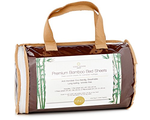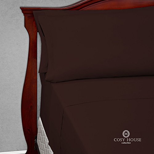 Cosy House Bamboo Bed Sheets, Set of 4 - Hypoallergenic, Ultra Soft & Cool Viscose Rayon & Microfiber Blend Bedding with Deep Pocket Fitted Sheet, Flat Sheet, and 2 Pillowcases - King, Chocolate