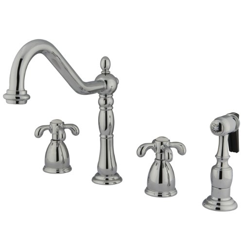 Kingston Brass KB1791TXBS French Country Widespread Kitchen Faucet with Brass Sprayer, Polished Chrome