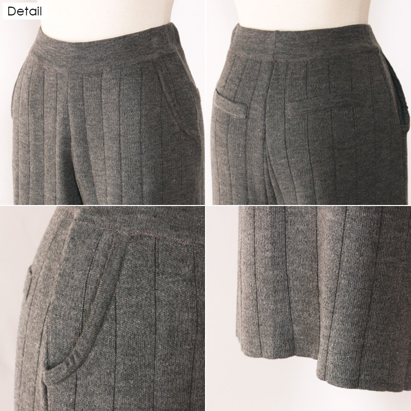 | サイズ | Mサイズ | | 実寸 | 着丈:約97cm ウエスト:約29cm ヒップ:約51cm 股上:約35cm 股下:約62cm 腿わたり:約31cm ※すべて平置きサイズです。 | | 素材 | アクリル100% | | 生産国 | 中国 | | 裏地 | なし | | 生地の伸縮 | あり | | 生地の透け感 | なし | | カラー | 01. 黒 02. グレー 03. ブラウン | | 注意点 | ▼綿混合商品は洗濯時に多少縮む事がございます。 ▼パソコン、モニター等の環境により、実際の商品素材カラーが多少異なる場合が御座います。予めご了承ください。 ▼お手数ですが必ずお買い物ガイドを一読頂いてからご利用いただきますようお願い申し上げます。 | |