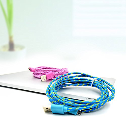 USB Charger Cable, Boxeroo 6ft/2m [3-pack] Nylon Braided Sync & Charging Cable Micro USB 2.0 Cables for Android Cellphones, Contollers, E-Readers MP3 Players and More(Pink, Purple, Blue)