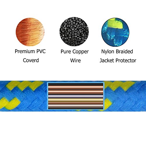 6.6 feet Extra long of portable, stainless steel connector heads slot in easily but securely and fit most cases. Durable, flexible cord with high quality Nylon fiber jacket is ideal for usage while charging in home, car, office and more
