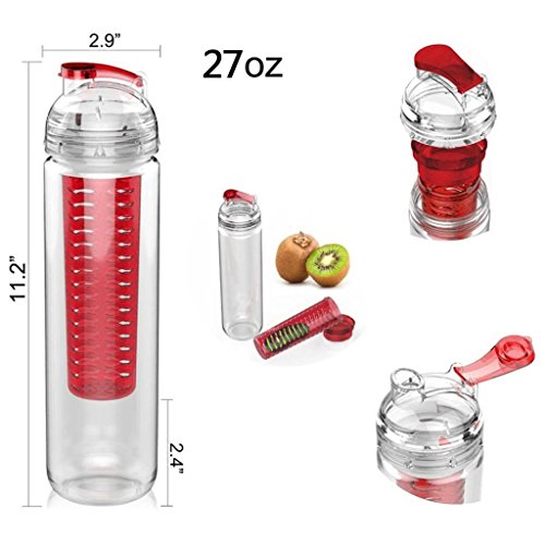 27 ounce water bottle with removable fruit infuser chamber lets you customize the flavor of your water