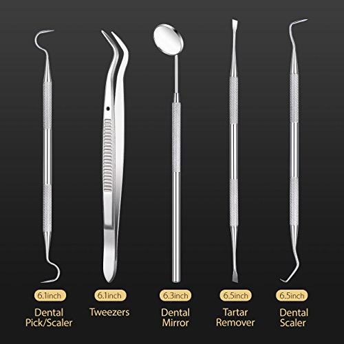 -. Title : Dental Tools, ElleSye 5 PACK Dental Pick Dental Scaler, Stainless Steel Dental Duty Cleaning Tools for Plaque Tartar Removal of Personal Oral Care & Pet Use