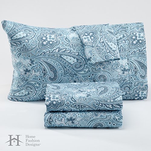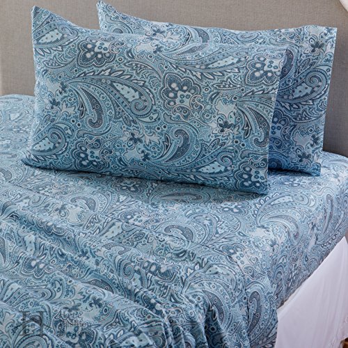 Sinclair Collection 300 Thread Count Cotton Rich Sheet Set. Breathable, Crisp, Durable, Wrinkle Resistant Bed Sheets in Beautiful Patterns By Home Fashion Designs Brand. (King, Citadel Blue Paisley)