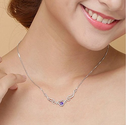 -. Title : Adorable Woman Women's Silver Plated Crystal Double Hearts Angel Wing Pendant Necklace