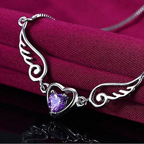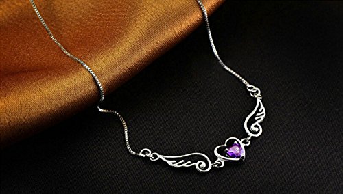 -. Feature : Material: Silver Plated, Cubic zirconia / Necklace length: Approx. 15 inch +2 inch Tail chain / Pendant size: 2" x 0.7" x 0.15" / Beautiful Purple/White Cubic Zirconia Pendant Necklace / Perfect Gift for Lady