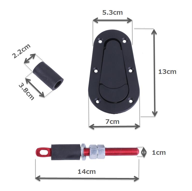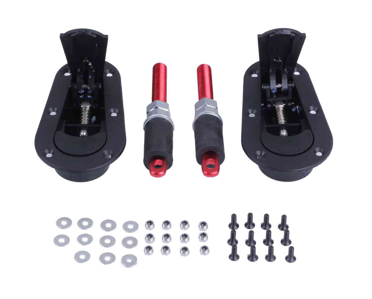・セット内容:フラットボンネットピン×2、ボディ側 キャッチロッド×2、ショック吸収ウレタン×2、本体固定用ビス×12、ナット×12、ワッシャ×12