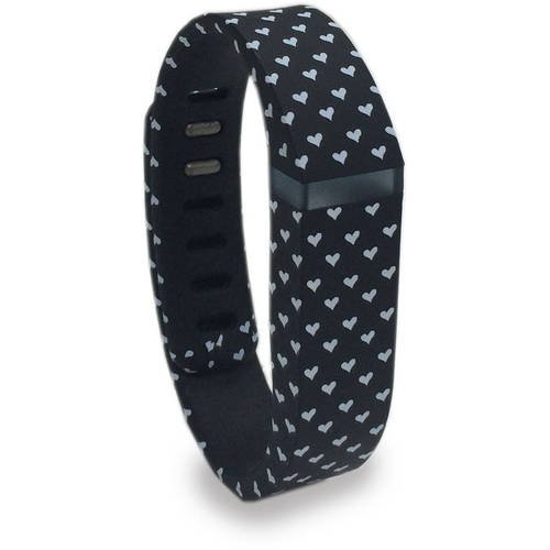 Voguestrap Smart Buddie 1800-1001-HRT Black & White Heart-Printed Rubber Strap Compatible with Fitbit Flex