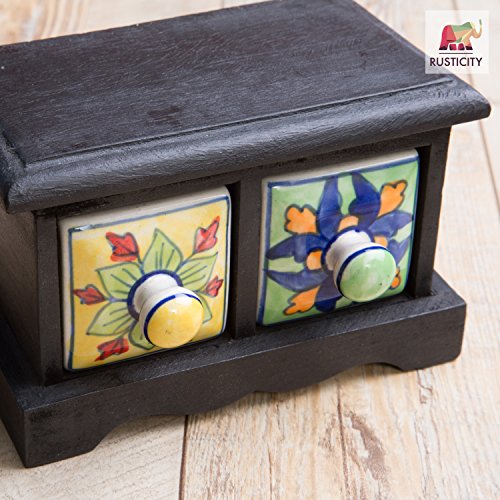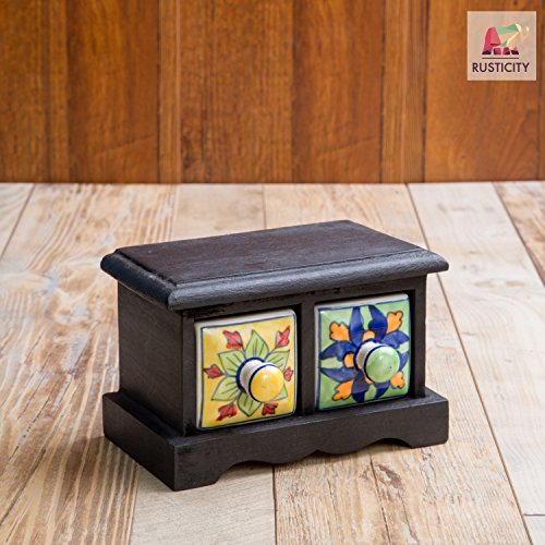 Rusticity Wooden Decorative Organizer Box for Jewelry / Desk Accessories / Decorative Box / Keepsake Bok - 2 Drawers | Hand Painted | Handmade |