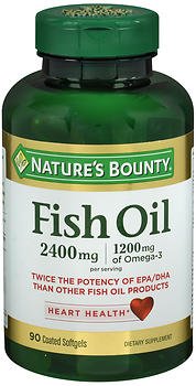 Nature's Bounty Fish Oil 2400 mg contains EPA and DHA, two Omega-3 fatty acids that help support and maintain the health of your cardiovascular system.* Omega-3 fatty acids are considered "good" fats important for cellular, heart and metabolic health and help maintain triglyceride levels already within a normal range.* Odor-less Fish Oil is coated to minimize the aftertaste and fish burps!Feature