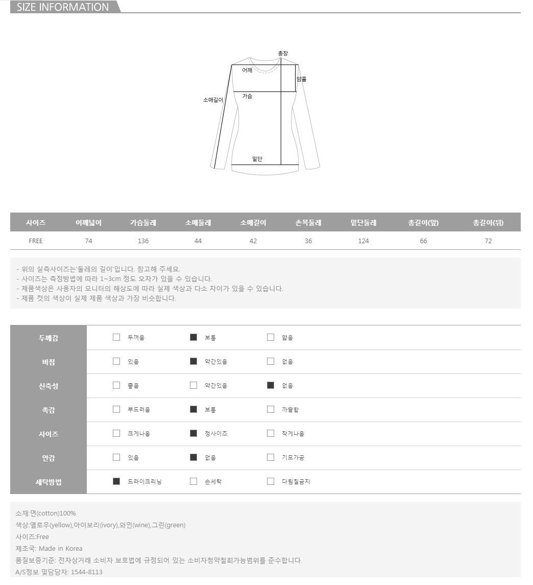 컬러는 옐로우아이보리와인그린 4color로 구성되어 있으며