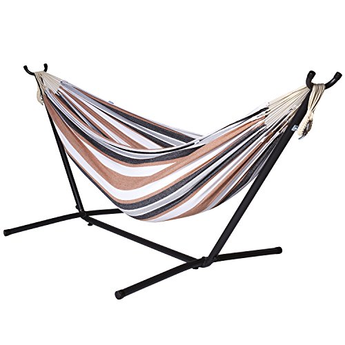 Camping Hammock with Stand - Double hammock Swing, 2 Person Brazilian Style, for Garden, Outdoor & Indoor, Portable for Travel Vacation, Space Saving Steel Frame & Carrying Bag
