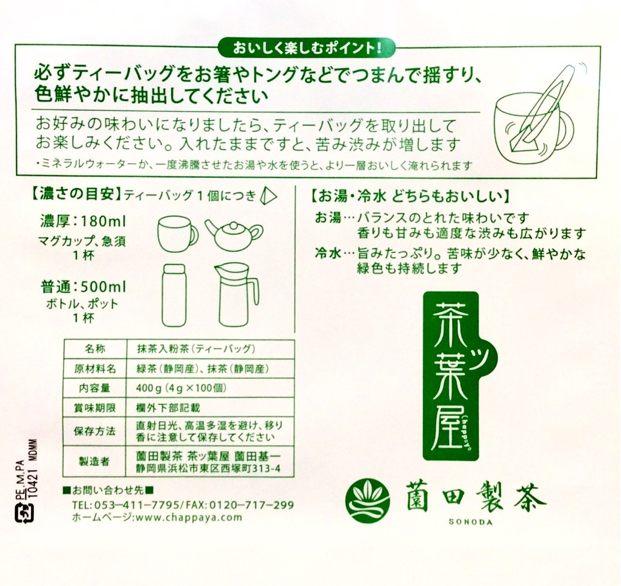 | ブランド | 静岡産抹茶入り緑茶ティーバッグ100個入り |