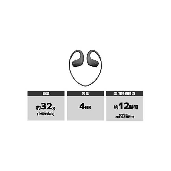 원본상품명: ソニ? SONY ヘッドホン一?型ウォ?クマン Wシリ?ズ NW-WS413 : 4GB スポ?ツ用 防水/海水/防塵/耐寒熱性能搭載 ブラック NW-WS413 B