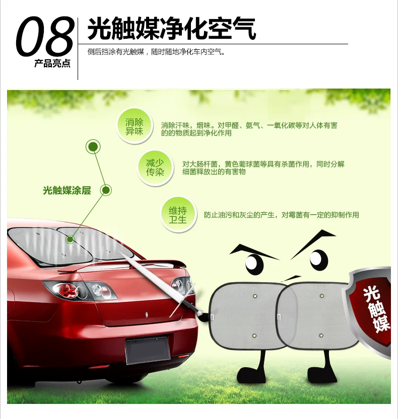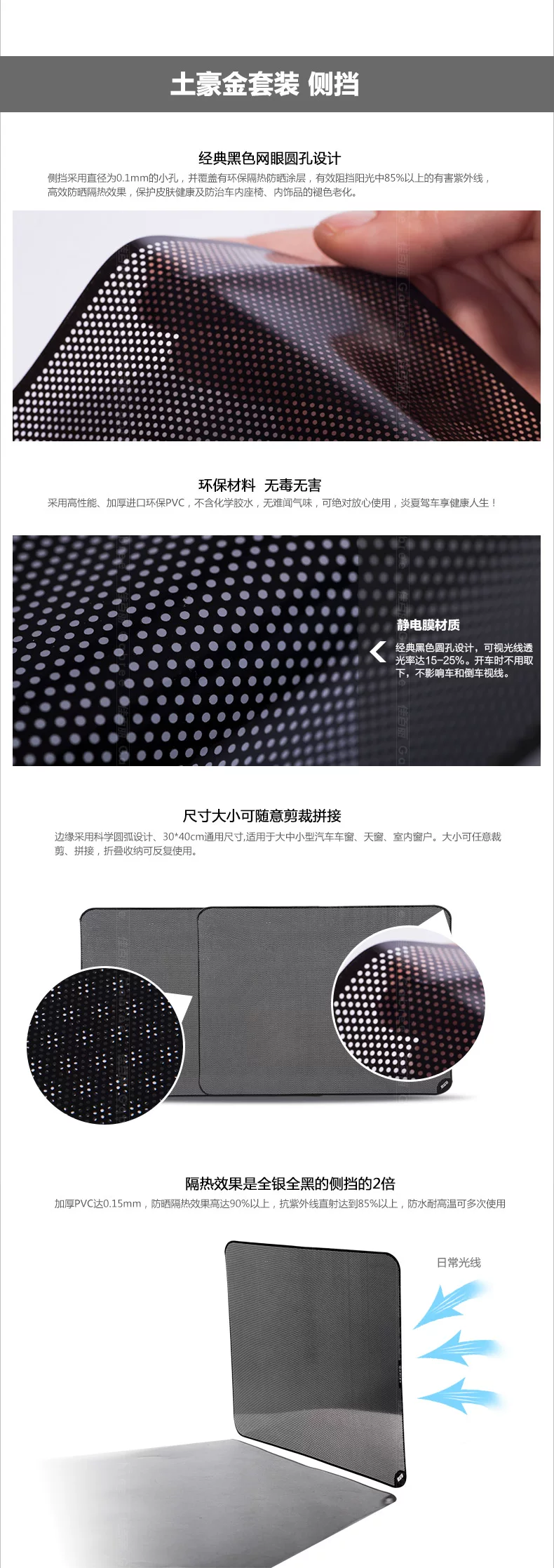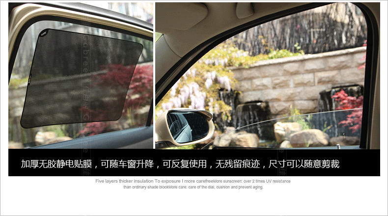 The sun block set, just before the file is changed with the model size sidebaffle are uniform in size! In order to meet the needs of more customers,launched a new electrostatic film side stalls electrostatic adsorption with the lifting of glass can be used repeatedly with the window shape cutting stitching the side profile demanding customers can choose!