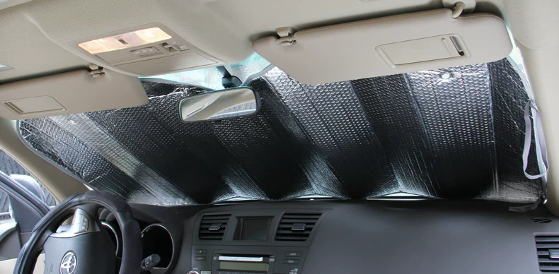 The following diagram to the Highlander for example we recommend the size is 145*80cm the front baffle slightly wider than the original 8-10 cmbut because the sun block with fold you in the installation without deliberately to stretch before the file as long as the sun block is inserted into the front gear gap glass and operation platform, U type sunshademouth card in the rearview mirror and then the visor down clip to achieve the perfect effect of sun!!