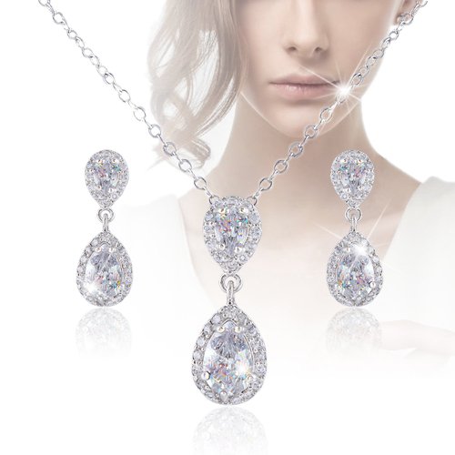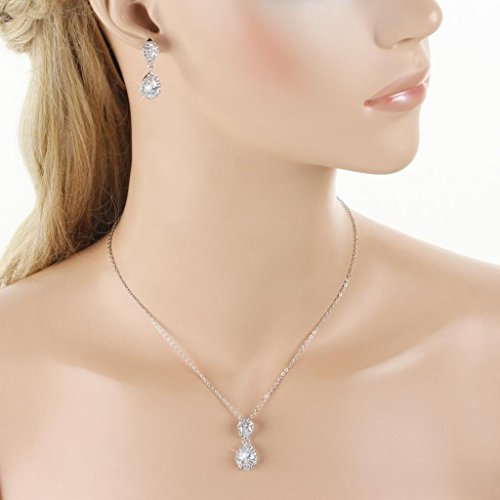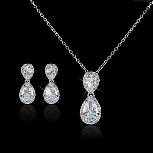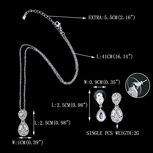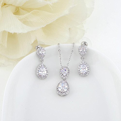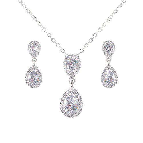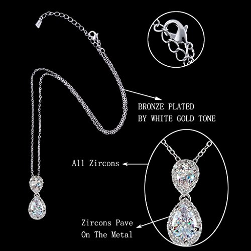 -. Title : EVER FAITH® Wedding Dual Teardrop Clear Prong CZ Necklace Earrings Set Silver-Tone