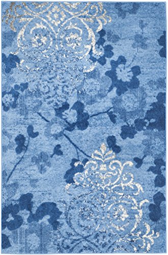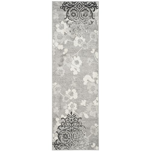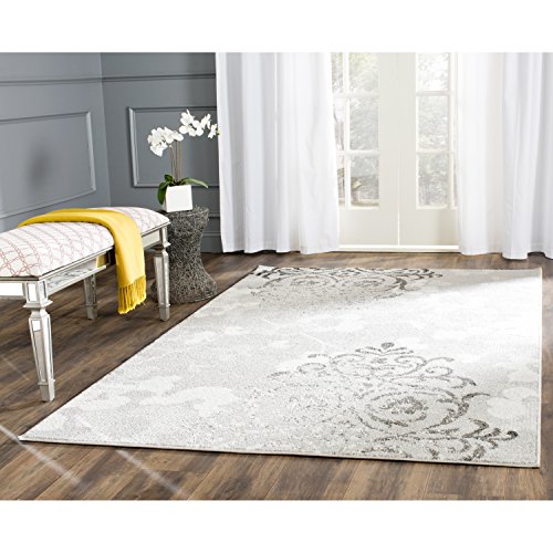 Featuring a dazzling design, this Safavieh Adirondack rug is inspired by global travel and the bold, colorful motifs adorning fashionable ski chalets. A lovely floral theme in the backdrop gives this rug a delicate touch, while a dramatic antiqued ivory and silver design dominates the foreground. Its subtle washed effect gives the rug character and a playful yet sophisticated appearance.