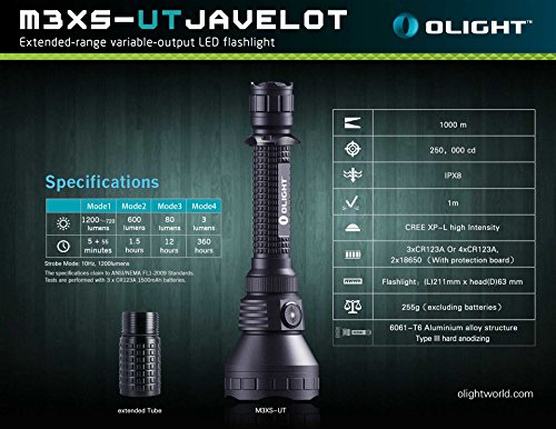 Olight M3XS-UT Javelot LED Flashlight M3X Upgrade Tactical Weapon Kit Hunting Package with Pressure Switch, LegionArms Off-set Mount