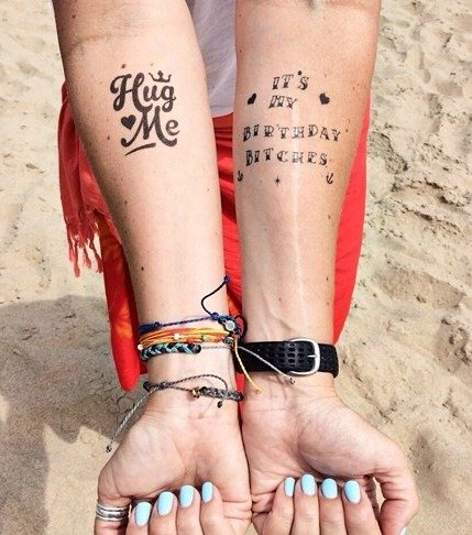 -. Feature : Tattoo sheet Size is 5" x 4 1/4", each letter is about 1/2" tall / Set includes 2 temporary tattoo sheets / Tattoos look incredibly real on the skin / Will last 1-3 days / Easy to apply with just water, remove with any household oil
