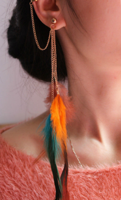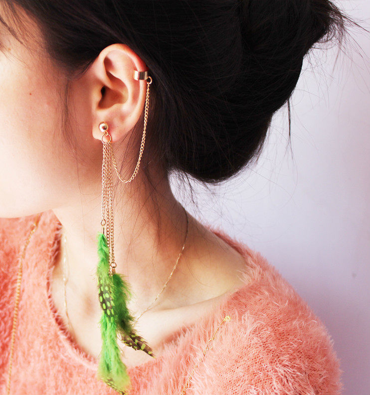 look! 2013 new fashion earrings trendy earrings Simple earrings Chain tassel earrings feather earrings