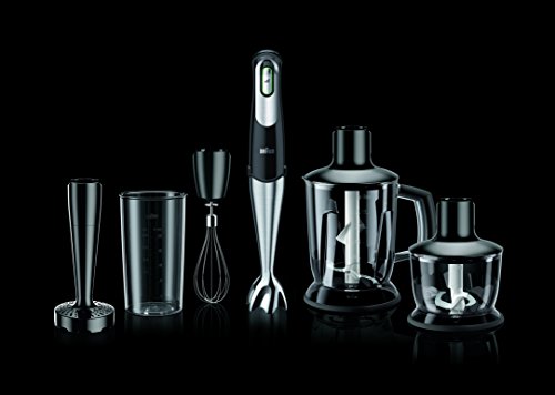 Studio : Braun Publisher : Braun Binding : Kitchen Product Description Elevate your cooking creativity to new heights with Braun, the global leader in hand blenders. The quick 7 Hand Blender, model MQ757, features the patented Smart Speed technology for faster and finer blending. Now you can prep meals easier than ever before with a soft-grip trigger resting comfortably in your hand; you are in control of the blending speed without interruption by simply applying more or less hand pressure. Designed for performance, the patented Power Bell system works magic on complex blends while offering less suction, so pureed mixtures stay where they belong - in the beaker, mixing bowl or stockpot. No mess, no more stress, just easy, convenient food prep by a tool that you're sure to use every day for all of your culinary tasks. The slip-proof ergonomic grip gives 'comfort food' a whole new meaning. It's never been easier to chop vegetables, whip up fluffy egg whites, puree soups and mash creamy potatoes. The quick 7 Hand Blender, model MQ757, a beaker, a whisk, a masher, a 2-cup chopper and a 5-cup Ice Crusher Jug Blender that give you the flexibility to add fresh twists to your favourite dishes. 0