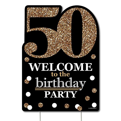 Adult 50th Birthday - Gold Yard Sign Decoration INCLUDES Welcome To The Birthday Party corrugated plastic yard sign and 2 sturdy metal stakes for displaying.