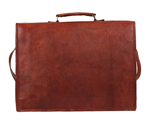 -. Binding : Electronics -. Brand : RusticTown -. Color : Brown -. EAN : 0712166250426 -. Feature : Everyday satchel Bag: Use it for school, college, office; carry on bus, bike, or cycle / Dimensions: 15x11x4 Inches. Rustic Town is connected with a number of Organizations within India which work to bring employment to artisans and keep alive traditional skills. / Strong & Durable: Brass Fittings & Buckles, YKK Zippers, Olive Green Heavy Duty Canvas Lining / Perfect and Ideal gift for your loved ones. Stylish and Classy. Will be cherished for a long time / *Limited Time Sale only. Hurry Before The Sale Ends!!* Fast shipping!! -. Label : PNR Crafts Pvt Ltd -. LegalDisclaimer : Please be aware that pure leather by its nature has some scars (due to markings/cuts on goat skin) which reconfirms that its 100% genuine and also makes every bag one of a kind and adds character to your prized possession. Also, each bag has distinctive color tone, which may deviate a little from given pictures. Please also note that this brand new bag may also have a distinctive leather smell. Most of our customers tend to like this earthly smell, some don't. In any case it does fade away within 4-6 weeks of regular use. -. Manufacturer : PNR Crafts Pvt Ltd -. Model : SHS151104KR -. MPN : SHS151104KR-2C -. PackageQuantity : 1 -. PartNumber : SHS151104KR-2C -. ProductGroup : PC Accessory -. ProductTypeName : CARRYING_CASE_OR_BAG -. Publisher : PNR Crafts Pvt Ltd -. Studio : PNR Crafts Pvt Ltd -. Title : Genuine Leather Laptop Bag 15 Messenger Gifts men women him her Leather Messenger Bag -. UPC : 712166250426
