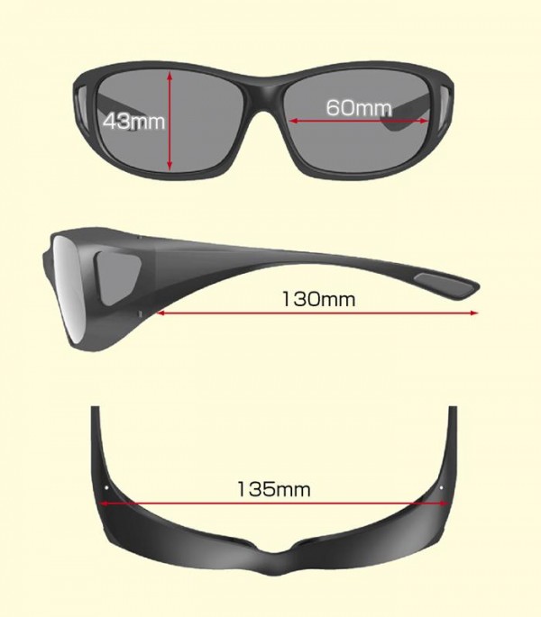 ご使用中のメガネの上から簡単装着。側面の視野を確保し、日本人の顔形状に合わせた立体形のデザイン。フレームは、弾力・耐久力に優れ、医療用途にも使用されています。レンズは軽量で、耐衝撃に優れた眼に優しい偏光ポリカーボネートレンズ!! |