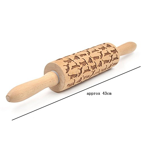 Zker 43cm Cat Pattern Wooden Rolling Pin Laser Cut Stylish Design Embossing Baking Tool of kitchen