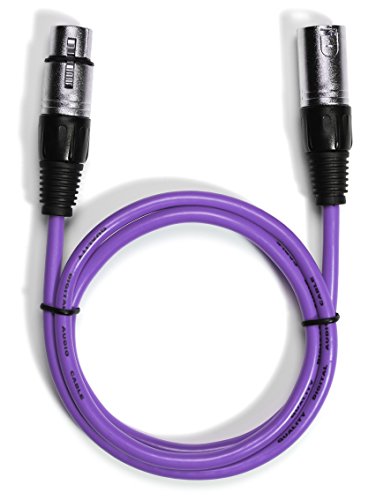 Aurum Ultra Series XLR Audio Cable Pack of 2 - 3 Pin Male to Female Microphone and Audio Cable 1.5 ft - 2 Pack, Purple