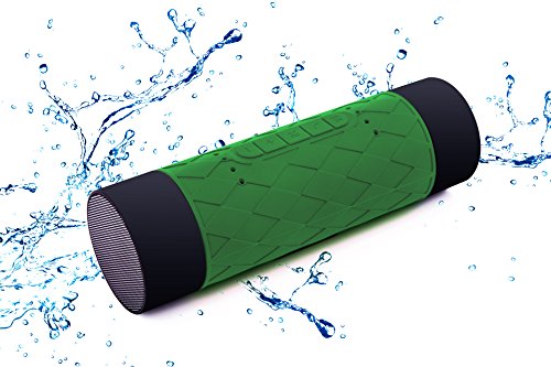 -. Feature : CRYSTAL CLEAR SOUND AND POWERFUL HIGH VOLUME:>75db SNR and <1% distortion achieve abundant clear sound without distortion even at highest volume. And dual 5 W powerful drivers deliver bright enough sound, balanced bass.It gives you very enjoyable experience whether you are listening music or playing games. / WATER RESIESSTANT IP65 BUCKLE DESIGN FOR OUDOOER SPORTSD : Water resistant IPX5 rating make it splash-proof, rain-proof, dust-proof, drop-proof.without worry that it cant work in case of falling to ground. Unique design with buckle ,easy hook it onto your bag for travel or onto bicycle for climbing. / 12 HOURS PLAYTIME AND 360 HOURS STANDBYTIME: Built-in 4400mAh Rechargeable Battery, one 2 hours charge lasts 12 hours of endless music at 2/3 volume and 360 hours standby time.With USB port,It can be used as a power bank to recharge your phone,i pad,MP3 player in urgent need. / UNIVERSAL COMPATIBILITY WITH FAST AND STABLE CONNECTION: Compatible with Bluetooth devices including iPhone, iPad, iPod,Android Smart phones, Tablets thanks to latest Bluetooth 4.0 technology with range up to 33 feet (10M).As well as non-Bluetooth devices through 3.5mm aux input to listen to your favorite music. / MICRO SD Card AND HAND-FREE CALL:Music play automatically after inserting a SD Card.The maximum capacity of SD card the speaker support is 32GB. Enjoy hands-free callings and use this wireless speaker with built-in microphone as a speakerphone. Perfect for both home and outdoor use!