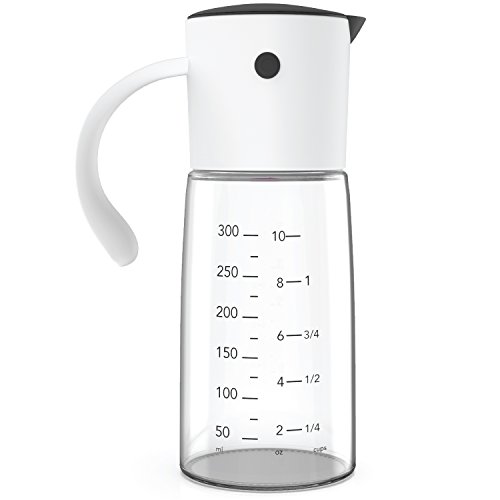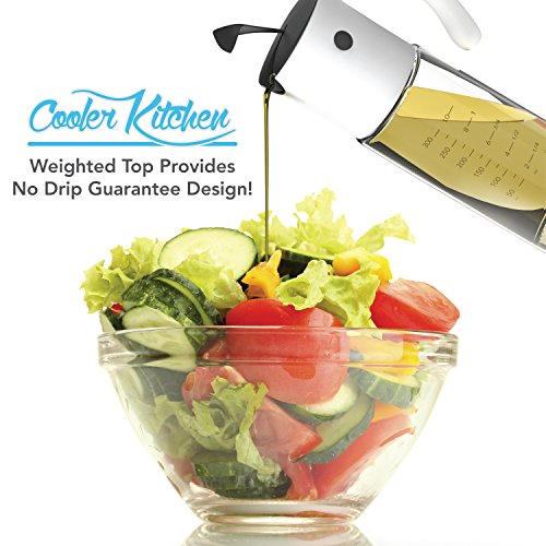 No Drip Perfect Pour Olive Oil Dispenser With Glass Bottle Measuring Base ? Weighted Lid To Pre...