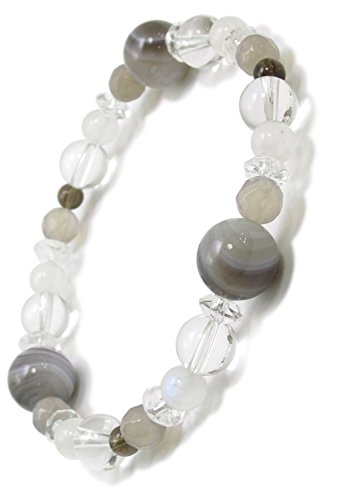 신쥬쿠은의 창고 6월의 탄생석 블룸―스톤 줄무늬 마노 그레이 아게―토 수정 팔찌 약17.5cm (레이디스L)