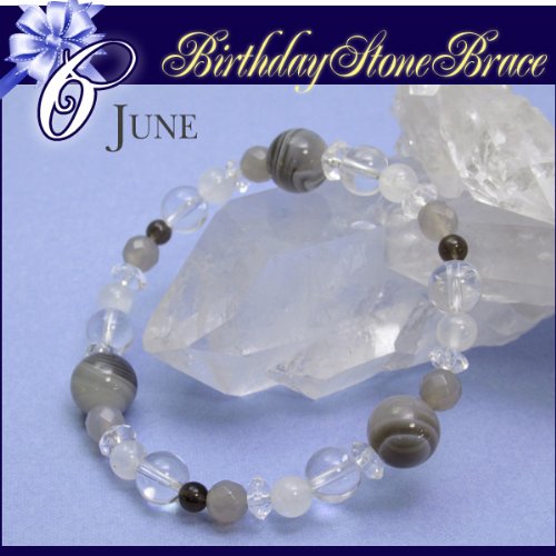 원본상품명: 新宿銀の? 6月の誕生石 ブル?ム?ンスト?ン 縞メノウ グレ?アゲ?ト 水晶 ブレスレット 約17.5cm (レディ?スL)