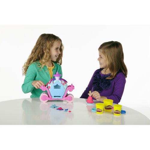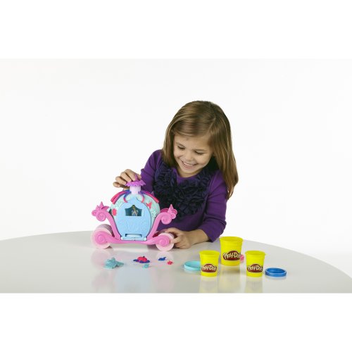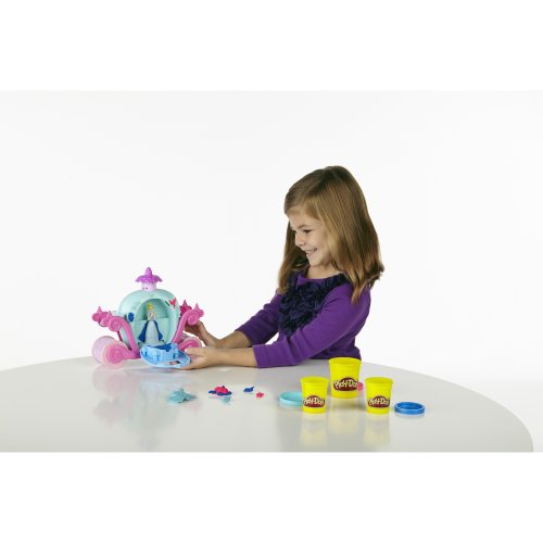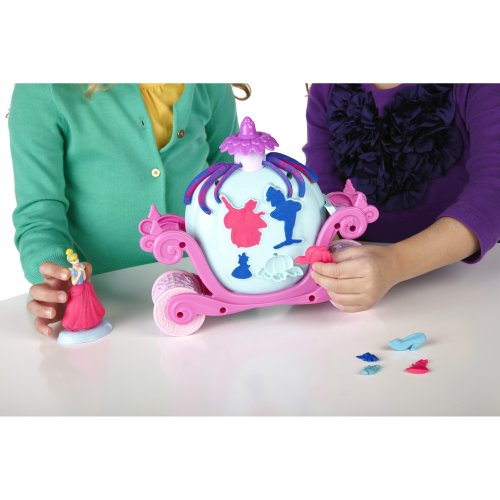 Cinderella needs your help getting ready to meet her Prince Charming at the royal ball. It's fun and easy to create sparkly gowns for her again and again. Just load some Play-Doh compound, place the mini-princess doll into the carriage, and close the door. When you take her out, she'll be wearing a gown that you can decorate with fun half-molds and all the shimmer and shine you can imagine. She'll be a princess before you know it!