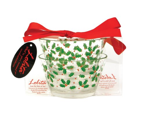- Set of 2 bpa-free acrylic bowls decorated with lolita's holly berry print - perfect to get your holiday party started