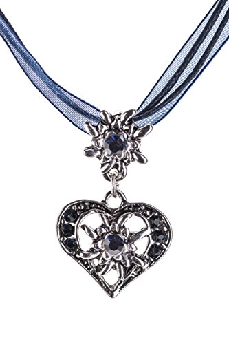 Schoneberger Trachten Couture Trachtenkette Wiesnherz - elegantes Herz mit Strass und Edelweiss in vielen Farben - Anhanger Trachtenschmuck Kette fur Dirndl und Lederhose Damen
