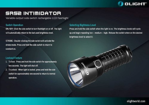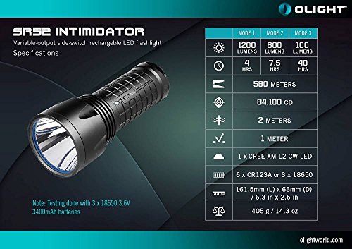 Olight SR52 Intimidator 1200 Lumen Cree XM-L2 LED USB rechargeable Flashlight, Nitecore i4 home/car intelligent Charger, three Olight 18650 3400mAh Li-ion rechargeable batteries and six EdisonBright CR123A Lithium Batteries bundle