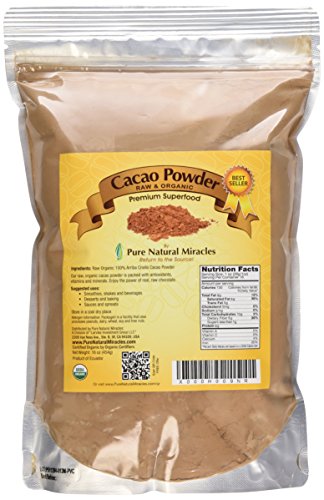 Premium Supernutrition Superfood Satisfy chocolate cravings and support health and longevity with the best Arriba Nacional, Criollo cocoa powder from Ecuador; our premium cacao is 100% pure, raw and unroasted, natural, non alkalized, organic and packed with vitamins, minerals and antioxidants. Contains Anandamine, the Bliss Chemical that makes us feel good, Omega 6 Fatty Acids and Essential Amino Acids. Contains serotonin and tryptophan. This raw cacao powder is stone ground and unprocessed and contains no added sugars, retaining its full bodied nutrition profile. Think dark chocolate, but healthier. More antioxidants than red wine, green tea and blueberries combined. David Wolfe from Longevity Warehouse and Mark Hyman highly recommend adding these vital nutrients to your daily health regimen. Avoid trans fat by eating these raw. We stand behind it with a 100% Manufacturers Lifetime Guarantee if you are not completely satisfied. Pure Natural Miracles Organic Raw Cacao Powder instantly transforms desserts, smoothies and other treats into guilt free bliss. Rejuvenate yourself now. Order now and click the button up top, to start living more healthy and enjoy the power of real raw organic chocolate.